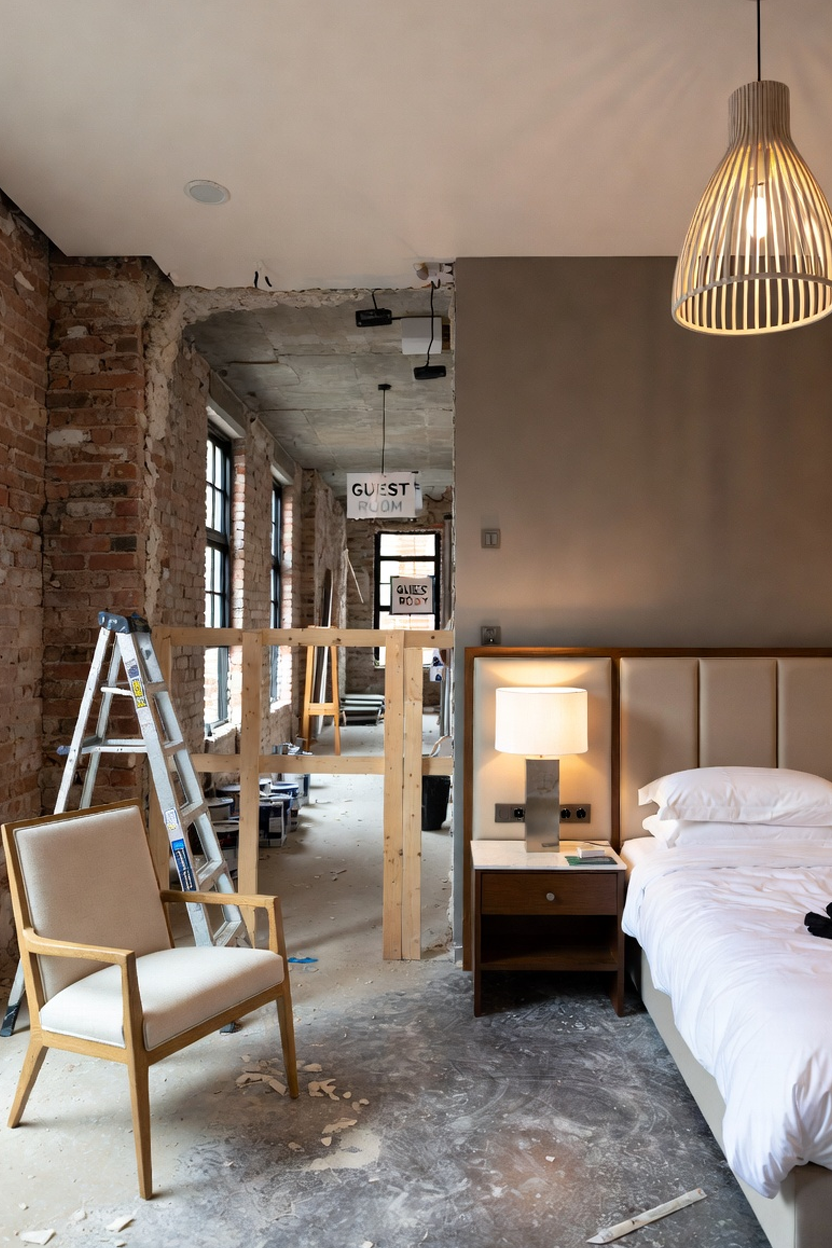 We manage every phase of the hospitality build—from structural reconfigurations and ensuite modernisations to bespoke FF&E (Furniture, Fixtures, and Equipment) installations. Our process is engineered for speed and precision, ensuring your rooms are back in service and generating revenue as quickly as possible.