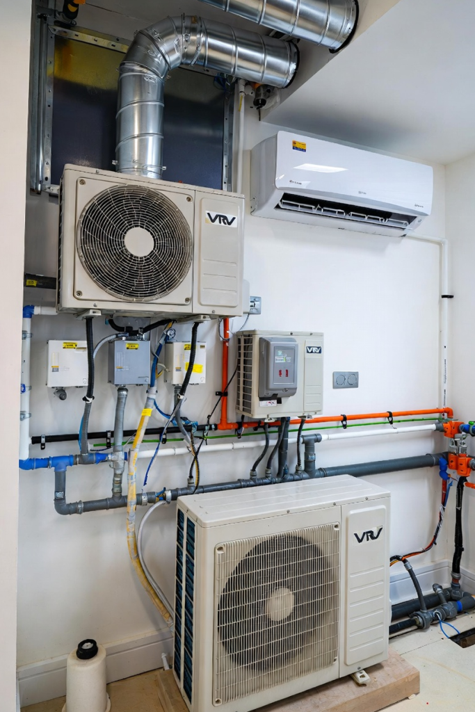 At Brit Home Design & Build, we provide sophisticated air conditioning solutions that go beyond simple cooling. We specialise in the design and integration of Variable Refrigerant Volume (VRV) and Variable Refrigerant Flow (VRF) systems, which offer unparalleled efficiency by modulating refrigerant flow to meet the precise demands of individual zones. For smaller applications, our bespoke split and multi-split systems provide quiet, reliable, and aesthetically discreet climate control.